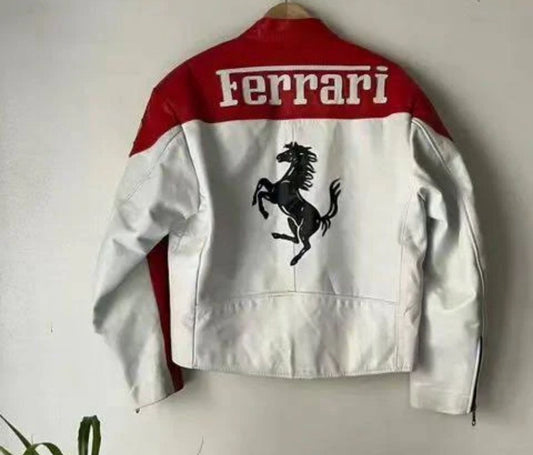 Ferrari Racing White Leather Jacket β Premium F1 Motorsport Outerwear
